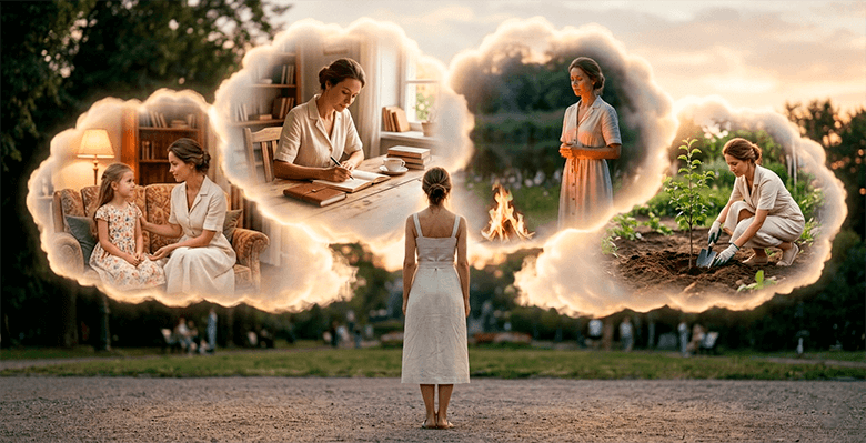 В текущей жизни такие мысли чаще всего не возникают из ниоткуда, они уже были когда-то в родовой памяти или в памяти души. События настоящего лишь становятся триггерами, активируя эту программу.